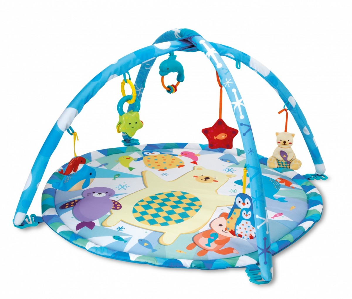 Mata wykonana jest z najlepszych materiałów. Jest mięciutkim i bezpiecznym miejscem do zabawy dla każdego malucha. Rozwija sprawność ruchową, zachęca do podnoszenia głowy, przekręcania się na brzuszek. Rozwija umiejętności poznawcze. Zabawki można zawiesić na różnych wysokościach, a także odczepiać je, żeby zabrać ze sobą na spacer lub w podróż autem. Ma odczepiane pałączki, jest łatwa do złożenia i zapakowania. Można prać w pralce.