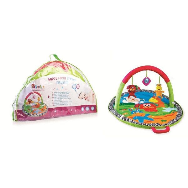 Edukacyjna MATA WESOŁA FARMA została zaprojektowana z myślą o zachęceniu dziecku udanej zabawy oraz zapewnieniu go do aktywności. Kolorowe postaci zaintrygują malucha, skłonią do obserwowania ich, poruszania nimi i pociągania za nie. Uwagę przyciągają także szeleszczące elementy i obracająca się grzechotka. Mata zapewnia prawidłowy rozwój dziecka poprzez stymulację zmysłów (wzroku, słuchu, dotyku) oraz zdolności motorycznych i manualnych.