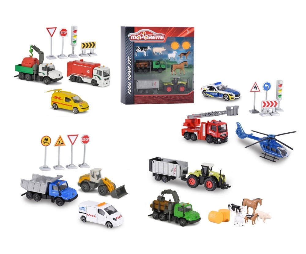 Każdy zestaw zawiera 3 pojazdy i akcesoria. Autka wyposażone są w otwierane i ruchome elementy.