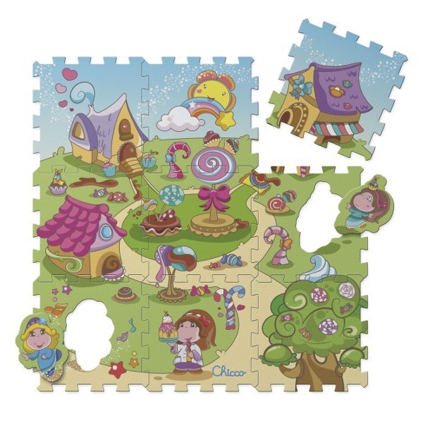 Chicco Miękka Mata Puzzle do zabawy, składana z 9 elementów to bardzo wygodna, miękka mata, na której dziecko może się bawić, raczkować, turlać, a jednocześnie powoli poznaje sytuacje, z jakimi na co dzień stykają się dorośli w miejskim środowisku oraz kolorowy świat słodkości. Z maty Miasto można wyjąć wóz strażacki i radiowóz policyjny, aby bawić się nimi i symulować jazdę po ulicach wyrysowanych na macie. Z kolei z maty Słodycze można wyjąć laleczki, któymi dziecko może bawić się oddzielnie i zwiedzać kolorowe miasteczko pełne słodkości. Elementy, które można wyjąć z poszczególnych puzzli może również posłużyć do zabawy w dobieranie elementu do powstałego w macie otworu. Obrazki na macie są w żywych, nasyconych kolorach, a kształty łatwe do rozpoznania. Mata ma wymiary 93x93 cm. Wykonana jest z siatki polietylenowej. Maty są odporne na przegryzienia. Wykonane są z trwałych, bezpiecznych materiałów o neutralnym zapachu. Matę można myć.