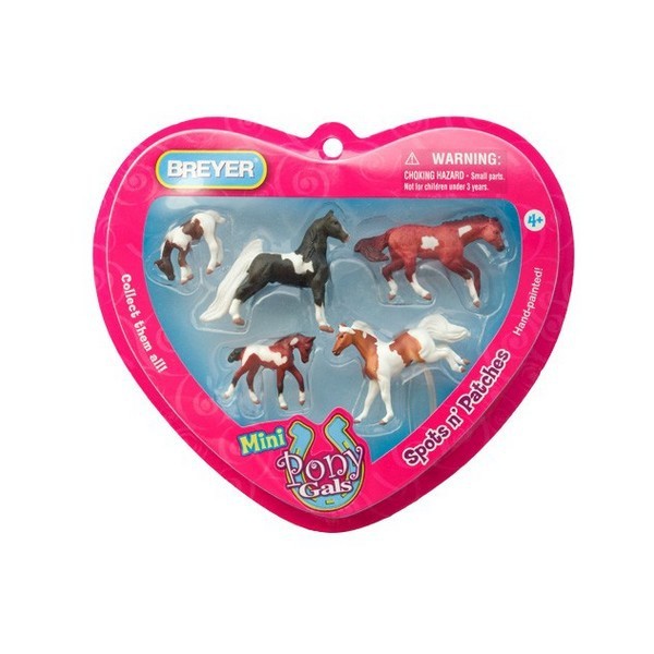 To słodkie figurki koni, odwzorowane w skali 1:64. Są urocze, bardzo realistycznie pomalowane (jak wszystkie modele Breyer). Doskonałe do zaczęcia przygody kolekcjonowania figurek firmy BREYER. Zestaw zawiera 5 koni z białymi "skarpetkami" na kopytach. Wszystkie mini koniki umieszczone w kolorowym blistrze w kształcie serca. Dla dzieci powyżej 4 roku życia.