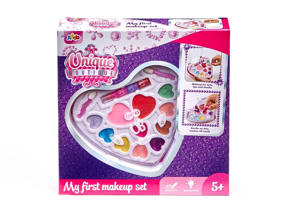 Zostań wizażystką i eksperymentuj z barwami. Zaskocz przyjaciół swoim odmienionym wyglądem, mieszaj kolory cieni do powiek i błyszczyków. Z tym zestawem z łatwością pomalujesz usta, powieki oraz policzki.