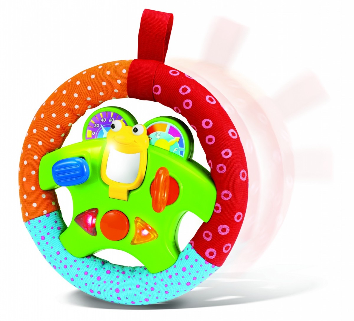 Interaktywna kierownica, która wydaje zabawne dźwięki i melodie. Posiada dostosowany do małych, dziecięcych dłoni ergonomiczny kształt. Dodatkowo pokrycie warstwą materiału zapewnia wygodny i pewny uchwyt. Różnorodność materiałów z jakich wykonana jest kierownica rozwija zmysł dotyku niemowlaka. Kierownica posiada automatyczny wyłącznik.