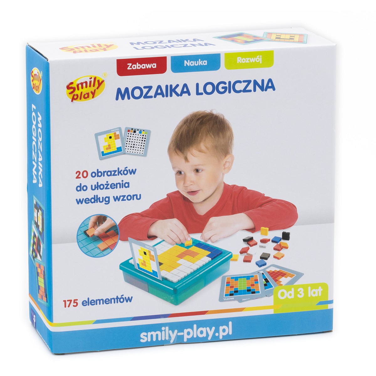 - Zacznij kreatywną zabawę! Wyjmij plastikowy pojemnik i otwórz pokrywę. Wyjmij kolorowe elementy mozaiki i umieść w przegródkach. Wybierz jedna z 20 dwustronnych kart pracy. Zamieść ją w otworze przykrywy i zacznij zabawę umieszczając kwadratowe elementy w odpowiednie miejsca. Każdy kolor przypisany jest do innej figury geometrycznej. Na jednej stronie karty pracy są figury geometryczne przypisane w odpowiednie okienka, na drugiej stronie karty pracy jest obrazek jaki ostatecznie ułożymy.