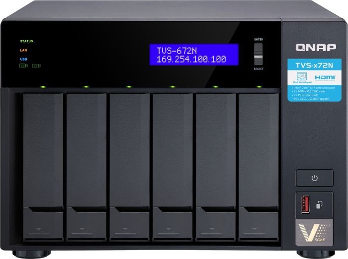 Wyposażona w procesor Intel Core i3 8. Generacji. Wysokowydajna stacja NAS TVS-672N oferuje wysoką przepustowość 5GBASE-T, umożliwiającą prędkość przesyłu pięć razy wyższą od tej w normalnej sieci Gigabit Ethernet, co pozwala na płynne przesyłanie obrazu wideo 4K, wyświetlanie i edytowanie. Dzięki obsłudze urządzeń M.2 SSD z buforowaniem SSD w połączeniu z portalem HybridMount do pamięci masowej w chmurze model TVS-672N zapewnia hybrydowe rozwiązanie pamięci masowej pozwalające używać pamięci w chmurze jako lokalnej i uzyskiwać dostęp do chmury z niższym opóźnieniem. Model TVS-672N jest oparty na wysokiej jakości sprzęcie, który zapewnia optymalną wydajność, wszechstronne funkcje multimedialne, pamięć masową z możliwością rozbudowy oraz liczne inne funkcje NAS, inspirujące do większej kreatywności i osiągnięć.