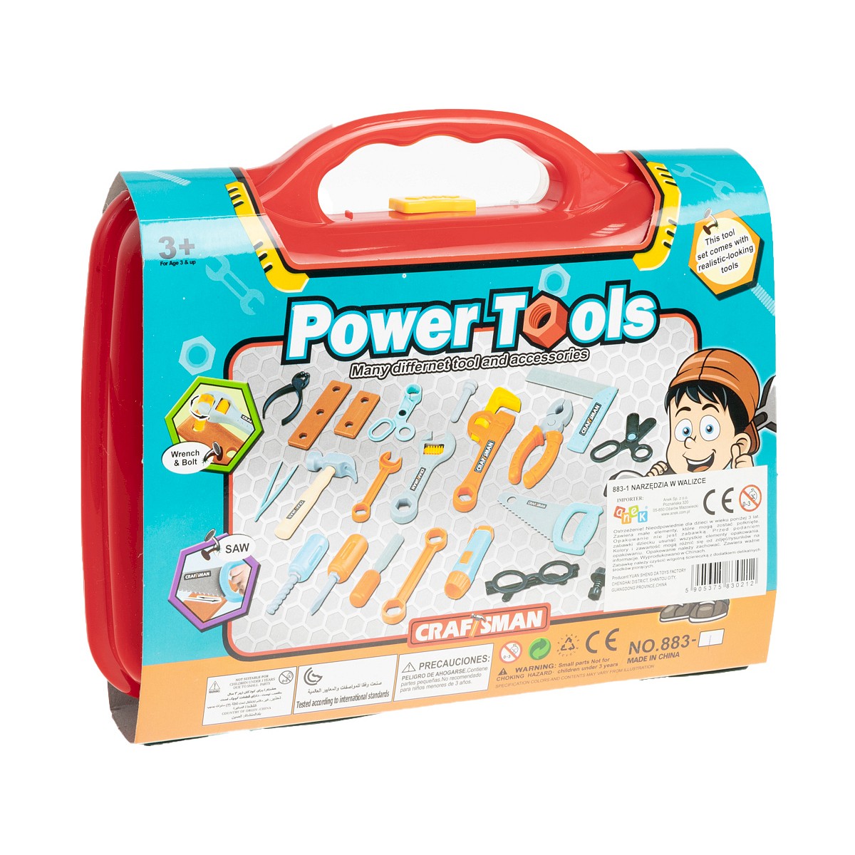Majsterkowanie może okazać się niezwykle wciągającą, interesującą i jakże pożyteczną zabawą dla dzieci. Potrzeba jednak właściwych narzędzi. Bardzo przydatna okaże się wtedy ta świetnie wyposażona walizeczka, która zawiera 22 elementy, potrzebne Małemu Majsterkowiczowi! Sama walizka jest w kolorze czerwonym, posiada przezroczysty przedni panel, dzięki któremu dziecko zawsze jest w stanie sprawdzić jej zawartość bez konieczności jej otwierania.