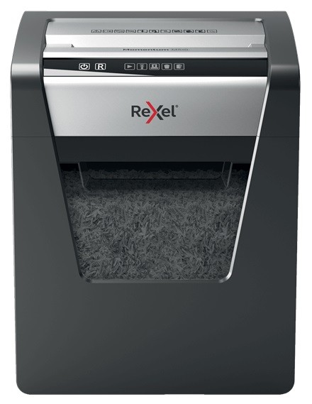 Posiada moc, aby niszczyć więcej! Niszczarka Rexel Momentum M510 niszczy do 10 kartek jednocześnie i może pracować nieprzerwanie przez 2 godziny - idealnie nadaje się do małego biura. Model M510 wyposażony jest w technologię zapobiegania zacięciom, która gwarantuje pracę bez zbędnych przestojów. Tnie na ścinki 2 x 15 mm, gwarantując tym bezpieczeństwo na najwyższym poziomie P5 oraz większą ładowność pojemnika na ścinki. Pracuje cicho, jest łatwa w obsłudze za pomocą dotykowego panelu sterowania i posiada 23-litrowy pojemnik na ścinki, który mieści do 250 kartek A4.
