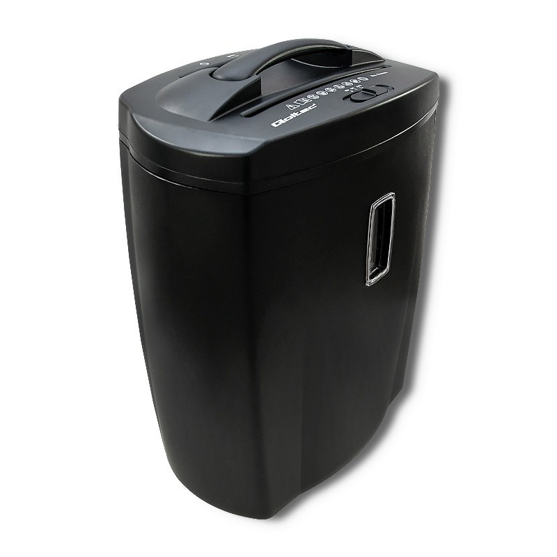 Niszczarka Qoltec doskonale sprawdza się w biurze. Umożliwia jednorazowe zniszczenie 10 kartek. Poziom bezpieczeństwa niszczonego papieru P-4. Niszczy również płyty CD, karty kredytowe oraz dokumenty z zszywkami i spinaczami.