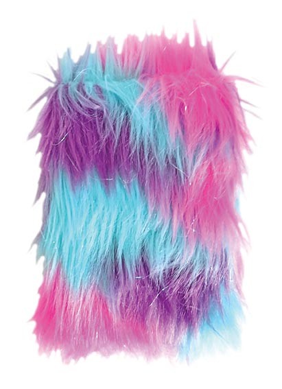 Notatnik pluszowy posiada miłe futerko w kolorze różowo-fioletowo-niebieskim z mieniącymi się włosami. Notatnik w linie, z miejscem na zapisanie daty, humoru i pogody.