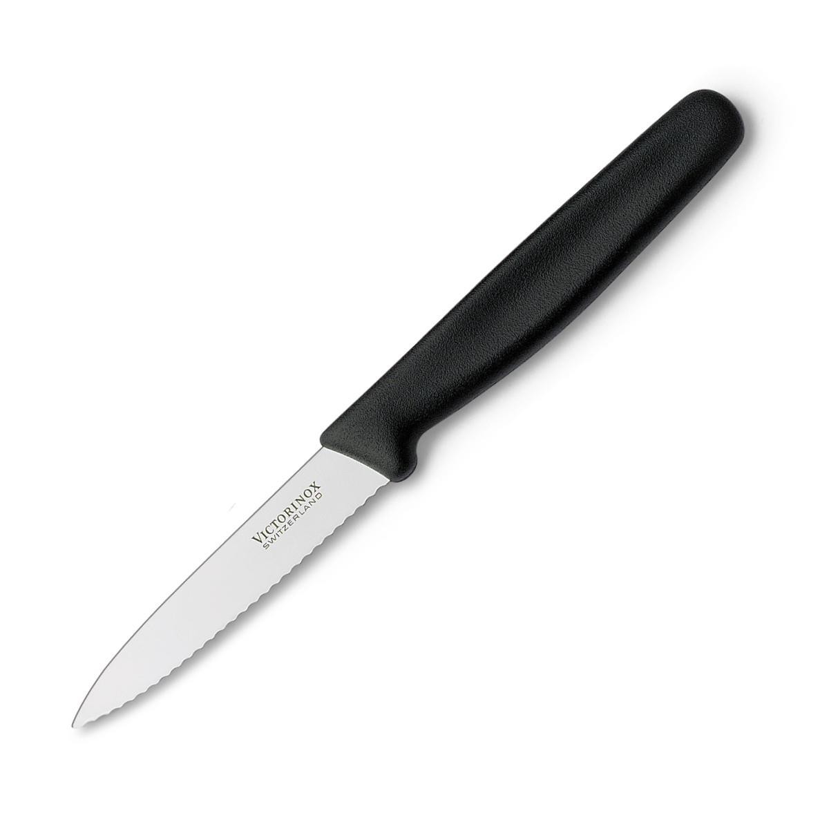 Strona główna AGD drobne do kuchni noże Nóż kuchenny, ząbkowany, 8 cm, czarny 5.3033 Cena Netto: 12,76 zł. error_outline Produkt chwilowo niedostępny. Opis Nóż do obierania z ząbkowanym ostrzem 5.3033 Victorinox Polecany kucharzom - rączka polipropylenowa. Nóż do obierania warzyw i owoców Ząbkowane ostrze o długości 8 cm