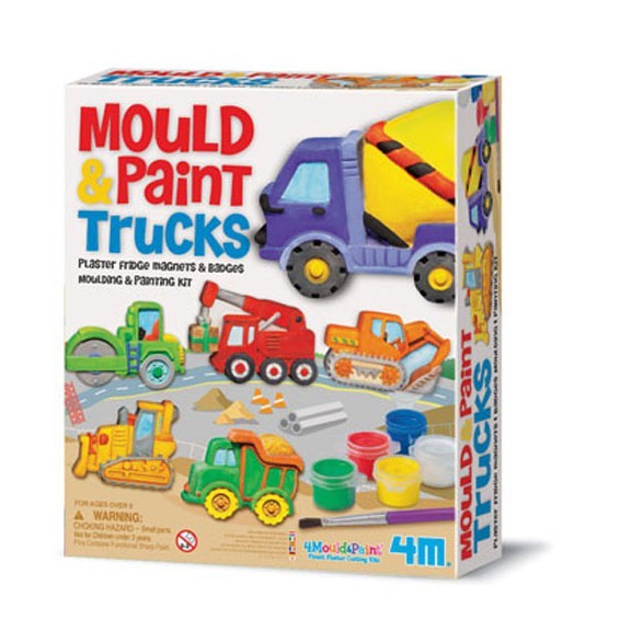 Dzięki niemu samodzielnie wykonasz odlewy gipsowe pojazdów, a za pomocą dołączonych do zestawu farbek pomalujesz! Jeśli wcześniej umieścisz w nich magnesy będziesz mógł przyczepić swoje na lodówkę! Stwórz betoniarkę, dźwig, wywrotkę, koparkę, walec i spychacz.