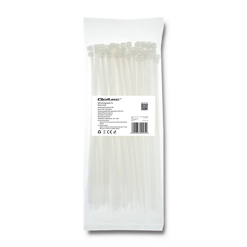 Opaski zaciskowe 4.8x250mm, nylon UV, 100szt., białe