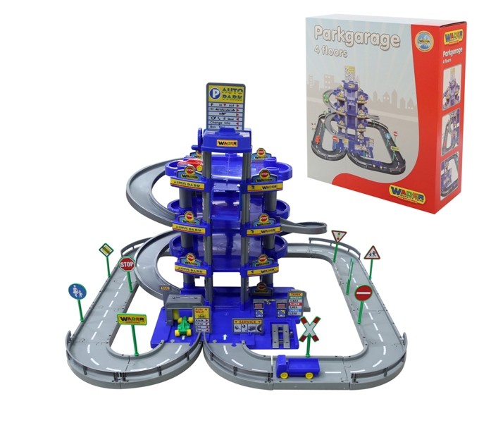 Parking 4-poziomowy z drogą i samochodami, niebieski (pudełko) 100,98 1 3+ 500195560 1 "Duży zestaw i dzięki niemu dużo zabawy. Tak w jednym zdaniu można określić PARKING 4 - POZIOMOWY Z DROGĄ I SAMOCHODAMI. Nie od dziś bowiem wiadomo, że maluchy uwielbiają zabawki wielofunkcyjne, które pozwolą dać upust ich wyobraźni. Wykonany z najwyższej jakości materiałów produkt zagwarantuje bezpieczeństwo i komfort niezawodności.Centralna część budowli to przede wszystkim parkingi wyposażone w barierki zabezpieczające. Kolejne poziomy połączone są zjazdami. Jest także w inda transportująca samochody na wszystkie cztery poziomy. Całość otoczona jest torami tworzącymi drogę, wzdłuż której umieszczono liczne znaki drogowe. Na samym dole, przy wjeździe na parking znajduje się stacja benzynowa z dystrybutorem, myjnia z obracającymi się gąbkami oraz warsztat samochodowy z podnośnikiem. Dodatkowym atutem są zawarte w zestawie trzy samochody (osobowy, wyścigowy i ciężarówka ) oraz komplet naklejek.