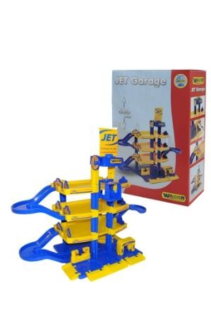 "Chłopcy uwielbiają bawić się samochodami. Organizują wyścigi, tankują, myją i naprawiają swoje auta nieskończoną ilość razy w ciągu dnia. Często używają do takiej zabawy własnej wyobraźni, gdy brakuje im przedmiotów i akcesoriów niezbędnych podczas odgrywania kolejnych scen. Właśnie dla nich świetnym rozwiązaniem są produkty z serii JET od firmy POLESIE Wader Quality Toys.Wszystkie piętra 4-poziomowego parkingu JET połączone są zjazdami. O prócz tego do transportu można użyć windy napędzanej specjalnym pokrętłem i działającej na zasadzie dźwigu. Na samym dole mały kierowca ma do dyspozycji stanowisko serwisowe, mini stacje benzynową oraz myjnię z obrotowymi gąbkami. Wszystko wykonane jest z najwyższą starannością, z najlepszych materiałów. Gwarantuje to bezpieczeństwo i trwałość produktu podczas użytkowania."