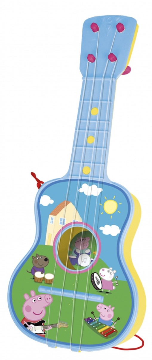 Kolorowa gitara od firmy Reig to wspaniała zabawka muzyczna dla wszystkich fanów bajki o Śwince Peppie.