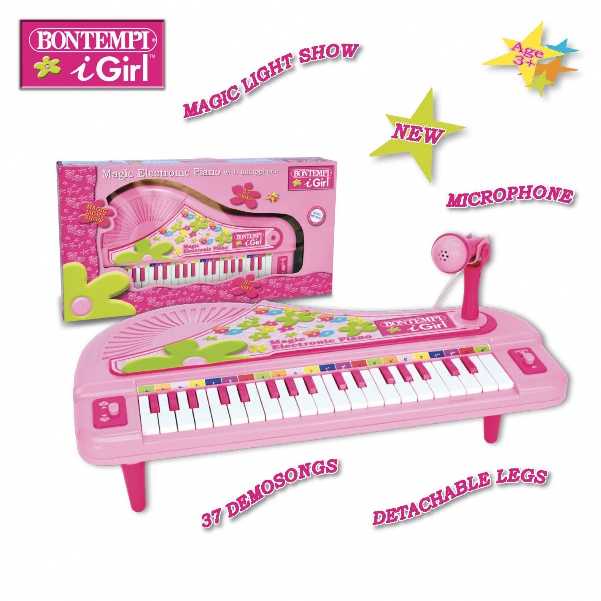 Pianino elektroniczne z mikrofonem stworzone przez włoską firmę Bontempi, zabawka która sprawi frajdę małemu instrumentaliście.
