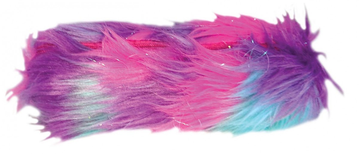 Piórnik futrzany w kolorze różowo-fioletowo-niebieskim z mieniącymi się włosami to trendy dodatek do szkoły. Ma mięciutkie futerko, jest w kształcie walca (długość ok. 23 cm), z jedną komorą zamykaną na zamek błyskawiczny.