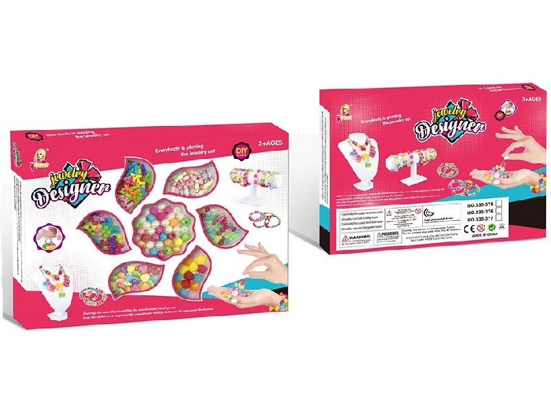 MAXI zestaw plastikowych koralików do nawlekania różyczki. Zestaw składa się z: elastycznej gumki do nawlekania, kolorowych, plastikowych koralików w różnych kształtach i kolorach różyczki, cukierki, muszelki, kwiatki, diamenty, tulejki. Koraliki nadają się do tworzenia modnej dziecięcej biżuterii bransoletek lub naszyjników. Całość zapakowana jest w estetyczne, kolorowe, kartonowe opakowanie. Zabawka wykonana z najwyższej jakości materiałów.