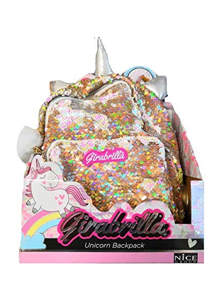Plecak średniej wielkości z rogiem jednorożca zawróci w głowie niejednej dziewczynce! Wykonany z materiały z odwracanymi cekinami, jest doskonałym uzupełnieniem stroju przedszkolaczki albo idealnym wycieczkowym plecakiem dla starszej dziewczynki. Jednokomorowy, zapinany na suwak, z przodu logo Girabrilla.