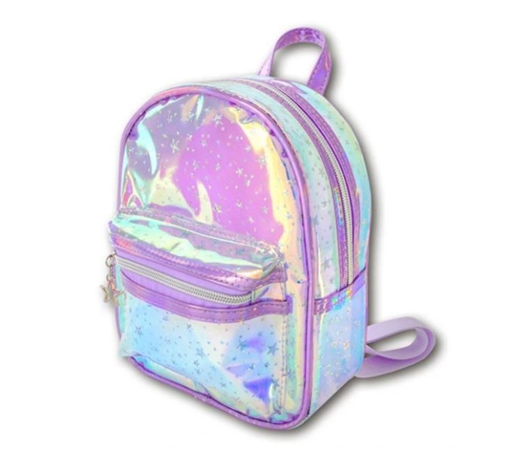 - Plecak wykonany jest z holograficznego materiału w gwiazdki błyszczy się i mieni wieloma kolorami.