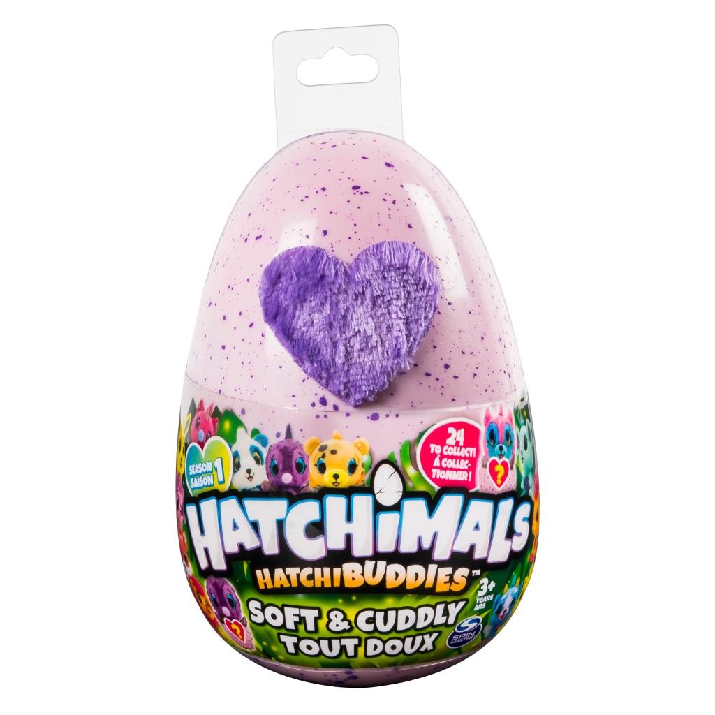 Hatchimals HatchiBuddies to przytulne, miękkie, pluszowe wersje Twoich ulubionych postaci Hatchimals! W nakrapianych jajach z puszystymi fioletowymi sercami ukrywają się miękkie stworki! Po prostu podnieś górę jajka, aby odkryć swojego magicznego nowego przyjaciela! Te pluszaki mają bardzo miękkie futro od nosa aż po ogon, duże, błyszczące oczy i lśniące skrzydła. Po wykluciu nowego przyjaciela użyj dolnej części jajka, jako wygodnego gniazda. Aż 24 postaci do zebrania!