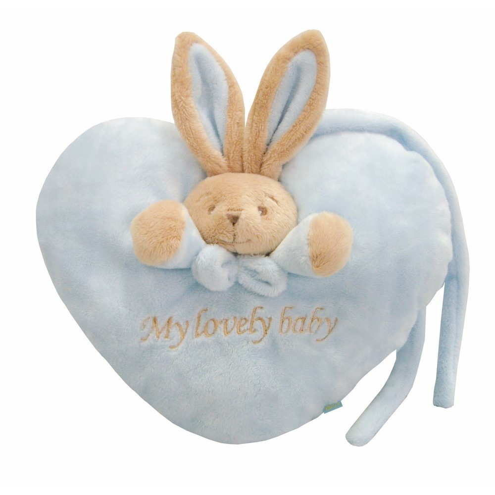 - Ozdobna pluszowa, zawieszka na łóżeczko w kształcie serca z motywem głowy króliczka z łapkami oraz wyhaftowanym napisem "My lovely baby"