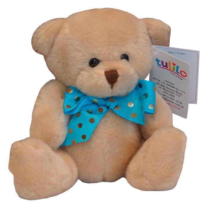 Miś Aluś przystrojony w kokardkę spowoduje uśmiech na twarzy każdego dziecka i nie tylko.