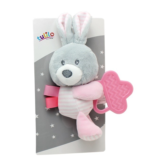New Baby Królik - pluszak z dodatkami to bardzo miła przytulanka w żywych kolorach. Zabawka ma uspokajający wpływ na małe dzieci i doskonale się sprawdza jako pomoc przy usypianiu. Królik wykonany jest z miłych, delikatnych materiałów i jest bezpieczny dla dzieci od pierwszych dni życia.