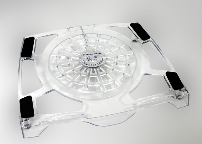 Cienka, nowoczesna i stylowa podkładka chłodząca pod notebooka. Posiada wbudowany niezwykle cichy, podświetlany, duży wentylator. Usuwa on ciepło wytwarzane pod spodem notebooka, chłodząc go i obniżając temperaturę pracy jego podzespołów co zapewnia stabilną pracę oraz dłuższą żywotność baterii. Solidnie wykonana, wytrzymała konstrukcja z łatwością utrzymuje ciężar notebooka. Nie wymaga zewnętrznych źródeł zasilania – zasilana z portu USB notebooka. Nie wymaga instalacji. Trwała, wygodna i łatwa w przenoszeniu. Kompatybilna ze wszystkimi rodzajami notebooków.