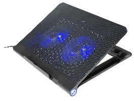 Elegancki wygląd stacja zawdzięcza wysokiej jakości tworzywu i delikatnemu granatowemu podświetleniu wentylatorów i portów USB. Stacja spokojnie pomieści nawet duże notebooki o przekątnej ekranu 17 cali. Laptop zabezpieczony jest przed zsuwaniem się ze stacji szeroką blokadą.