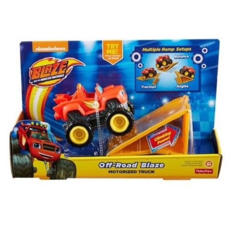 Blaze to ulubiony monster truck każdego małego fana motoryzacji. Teraz samochodzik jest dodatkowo zmodyfikowany w pojazd typu off-road. Możesz więc zjechać z asfaltowej drogi i pomknąć pomiędzy górami i lasami, mknąć przez polne drogi. Ani błoto, ani podmokłe tereny, ani wystające kamienie nic nie stanie naszemu bohaterowi na drodze! Samochodzik jest plastikowy, ma duże i grube opony oraz wysokie zawieszenie. Dodatkowo, na masce pojazdu znajduje się przycisk, który uruchamia napęd na tylne koła. W zestawie znajduje się także żółta rampa, którą można ułożyć pod różnym kątem. Ćwicz wyskoki i inne manewry, by Blaze nie miał sobie równych w każdym wyścigu, nawet w bardzo trudnych warunkach!