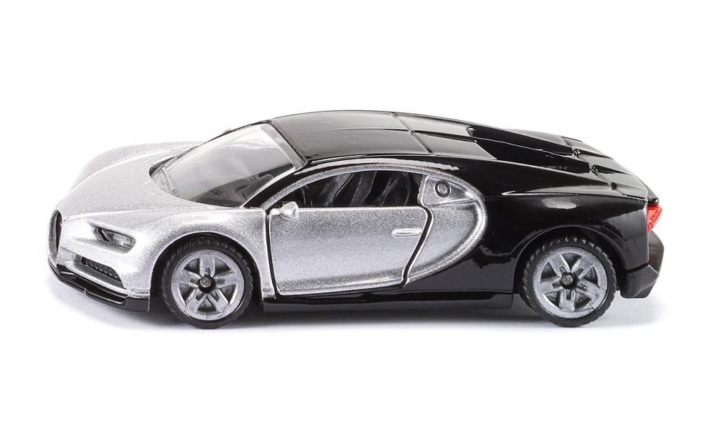 Szeroki, płaski, muskularny: Bugatti Chiron nawet gdy stoi wygląda jak drapieżnik gotowy do ataku. Drapieżnik ten mający 1500 KM i 16-cylindrowy silnik może być ujarzmiony tylko przez bardzo doświadczonych kierowców. Turbinowy napęd za pomocą tylnego silnika kończy się dopiero przy 420 km/h. Dobrze, że ten model SIKU ma szerokie opony trakcyjne. Szeroko otwierane drzwi umożliwiają swobodne wysiadanie po szybkiej przejażdżce po pokoju dziecinnym.