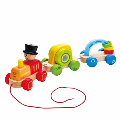 Każdy z nich to element zachęcający do zabawy. W jednym poruszają się kulki wydając dźwięk, a drugi posiada elementy do przesuwania po grzbiecie wagonu. Nad bezpieczną zabawą czuwa pilny maszynista i zachęca dzieci do wspólnych spacerów. Umożliwia to sznurek zamocowany do lokomotywy.