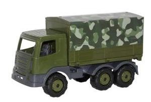 " Zabawki związane z wojskiem nie zawsze muszą kojarzyć się z odgrywaniem scen batalistycznych. Żołnierze zawsze fascynowali, budzili respekt, szacunek i zaufanie. Dzieci chętnie widziały w nich swoich bohaterów. Ulubione postacie muszą mieć zapewniony odpowiedni transport. Dla maluchów interesujących się militariami firma POLESIE ma w swojej ofercie serię samochodów wojskowych. "PRESTIŻ", SAMOCHÓD Z PLANDEKĄ to pojazd wyposażony w sześć szerokich kół o nierównej strukturze, dzięki którym sprawnie jeździ po zróżnicowanych nawierzchniach. Jego naczepa posiada trzy burty, które można otworzyć. Oprócz tego plandekę umieszczoną na stelażu, którą można unieść do góry lub ściągnąć. Z przodu auta znajduje się miejsce na przywiązanie sznurka, dzięki czemu pojazd można ciągnąć. W kabinie kierowcy z kolei jest mnóstwo miejsca dla figurki ulubionego żołnierza."