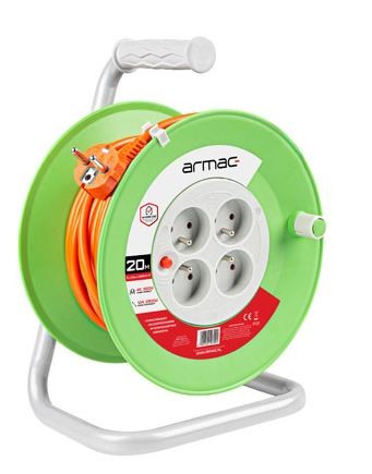 Kabel został zakończony wtyczką Uni-Schuko z uchem, która od wielu lat jest obowiązującym standardem w Polsce. Wtyczka dzięki swej ergonomicznej budowie ułatwia szybkie podłączenie i odłączanie od źródła zasilania. Przedłużacz posiada cztery gniazda typu E, znajdujące się na boku wytrzymałego bębna, które zagwarantują stabilne działanie podłączonego sprzętu. Każde z nich wyposażone w przesłony ochronne, gwarantują wysoki poziom bezpieczeństwa przeciwprzepięciowego za sprawą bezpiecznika automatycznego.