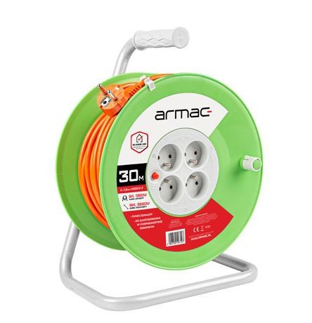 Kabel został zakończony wtyczką Uni-Schuko z uchem, która od wielu lat jest obowiązującym standardem w Polsce. Wtyczka dzięki swej ergonomicznej budowie ułatwia szybkie podłączenie i odłączanie od źródła zasilania. Przedłużacz posiada cztery gniazda typu E, znajdujące się na boku wytrzymałego bębna, które zagwarantują stabilne działanie podłączonego sprzętu. Każde z nich wyposażone w przesłony ochronne, gwarantują wysoki poziom bezpieczeństwa przeciwprzepięciowego za sprawą bezpiecznika automatycznego.