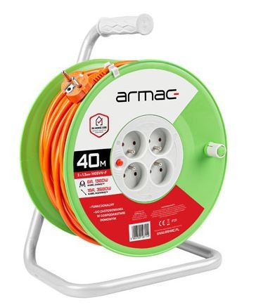 Kabel został zakończony wtyczką Uni-Schuko z uchem, która od wielu lat jest obowiązującym standardem w Polsce. Wtyczka dzięki swej ergonomicznej budowie ułatwia szybkie podłączenie i odłączanie od źródła zasilania. Przedłużacz posiada cztery gniazda typu E, znajdujące się na boku wytrzymałego bębna, które zagwarantują stabilne działanie podłączonego sprzętu. Każde z nich wyposażone w przesłony ochronne, gwarantują wysoki poziom bezpieczeństwa przeciwprzepięciowego za sprawą bezpiecznika automatycznego.