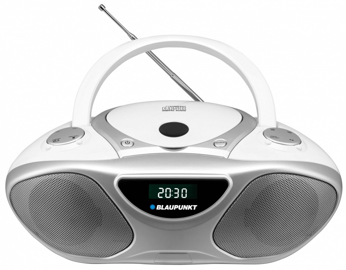Radioodtwarzacz zasilany jest zarówno z sieci elektrycznej za pomocą dołączonego przewodu, jak i za pomocą opcjonalnych (nie załączonych w zestawie) 6 baterii typu R14. Na czas zasilania bateryjnego przewód sieciowy można schować w komorze baterii. O dobry odbiór stacji radiowych dba wbudowana antena teleskopowa. Wyświetlacz LCD wskaże zarówno częstotliwość radiowa, czas odtwarzania danego utworu na płycie CD lub zegar, który jest dopełnieniem funkcjonalności tego poręcznego radioodtwarzacza.