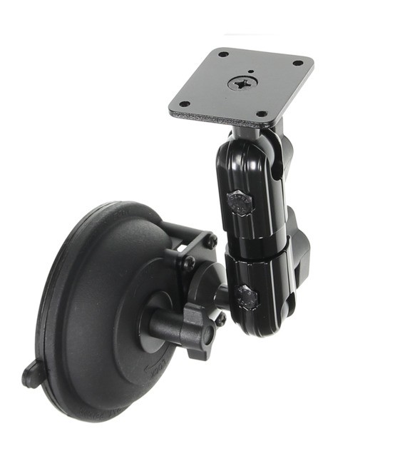 Baza montażowa, osadzona na przegubach kulowych z kwadratową podstawą z wstępnie nawierconymi otworami w systemie AMPs montowana na przyssawce. Baza dedykowana jest do wózków widłowych. Idealnie nadaje się do montowania na niej wszelkiej elektroniki przemysłowej np. tablet czy skaner kodów kreskowych. Ramię posiada szeroki zakres regulacji, który wynosi 360 stopni w poziomie, a także 210 stopni jeśli chodzi o pozycje wertykalną bądź horyzontalną. Dodatkowo ramię posiada 2 zintegrowane z nim pokrętła motylkowe, dzięki którym można w bardzo prosty i szybki sposób wyregulować mocowanie bez pomocy narzędzi.