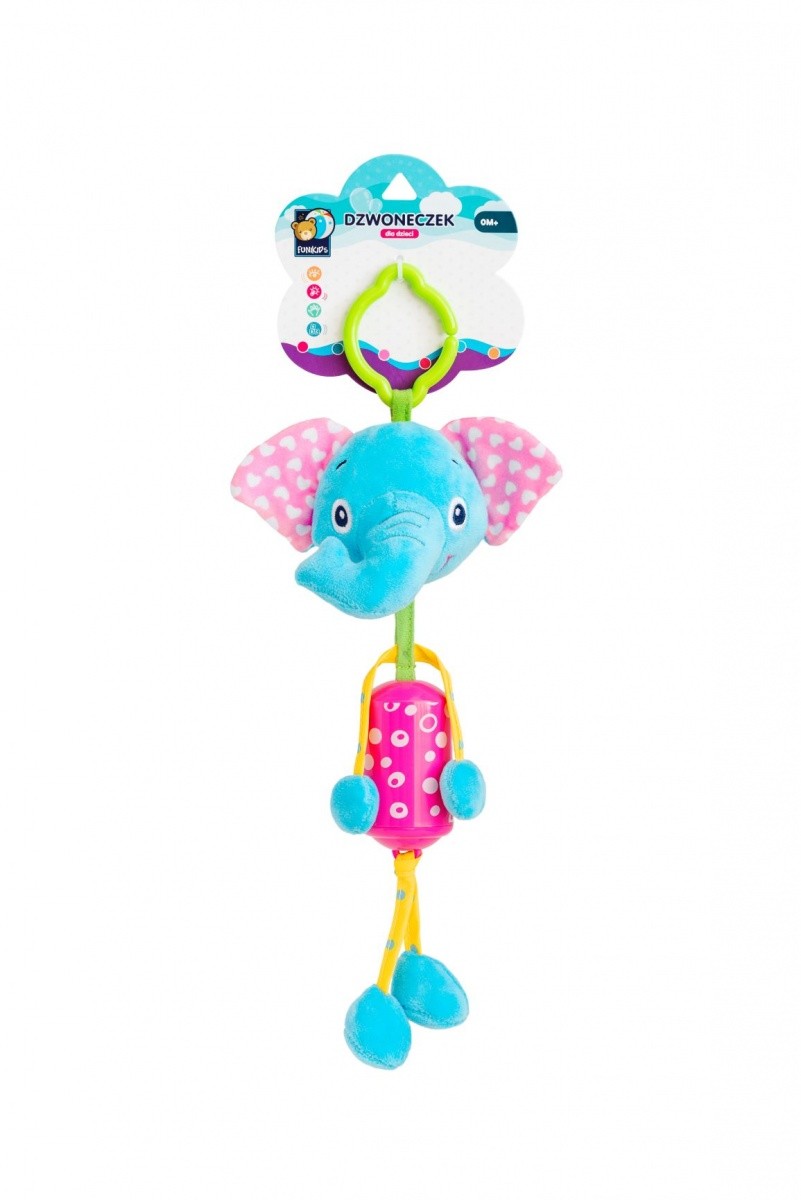 Zawieszki Funikids są przeznaczone dla maluchów już od pierwszych dni życia. Wygodny zaczep mocujący sprawia, że rodzic może odpinać i przepinać zawieszkę z wózka do łóżeczka i na odwrót. Walor dźwiękowy to dzwoneczek w kształcie walca, obszyty kolorowym materiałem. Zabawka dzwoni wesoło przy każdym potrząsaniu, zwracając uwagę maluszka. Zawieszka ze Słonikiem jest także zabawką sensoryczną, która pomaga dziecku poznać pierwsze kolory i różne faktury materiałów.