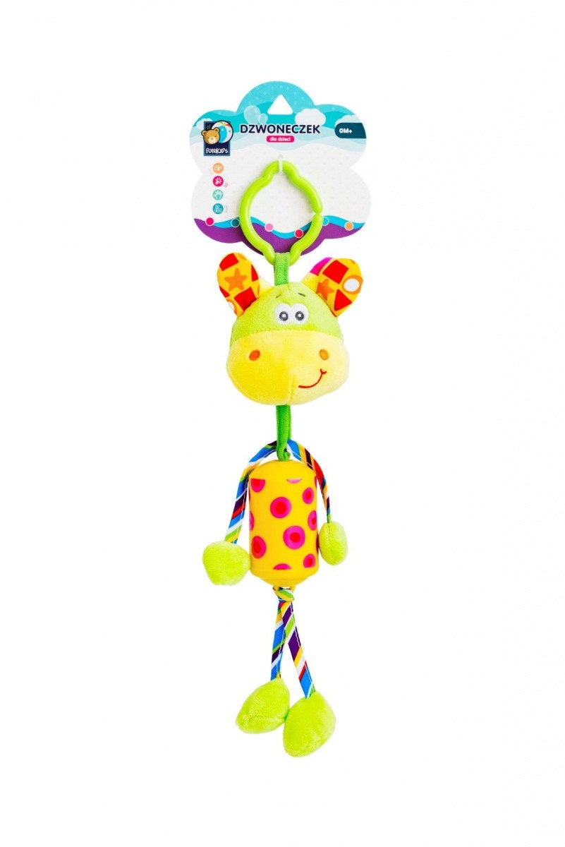 Zawieszki Funikids są przeznaczone dla maluchów już od pierwszych dni życia. Wygodny zaczep mocujący sprawia, że rodzic może odpinać i przepinać zawieszkę z wózka do łóżeczka i na odwrót. Walor dźwiękowy to dzwoneczek w kształcie walca, obszyty kolorowym materiałem. Zabawka dzwoni wesoło przy każdym potrząsaniu, zwracając uwagę maluszka. Zawieszka z Żyrafą jest także zabawką sensoryczną, która pomaga dziecku poznać pierwsze kolory i różne faktury materiałów.