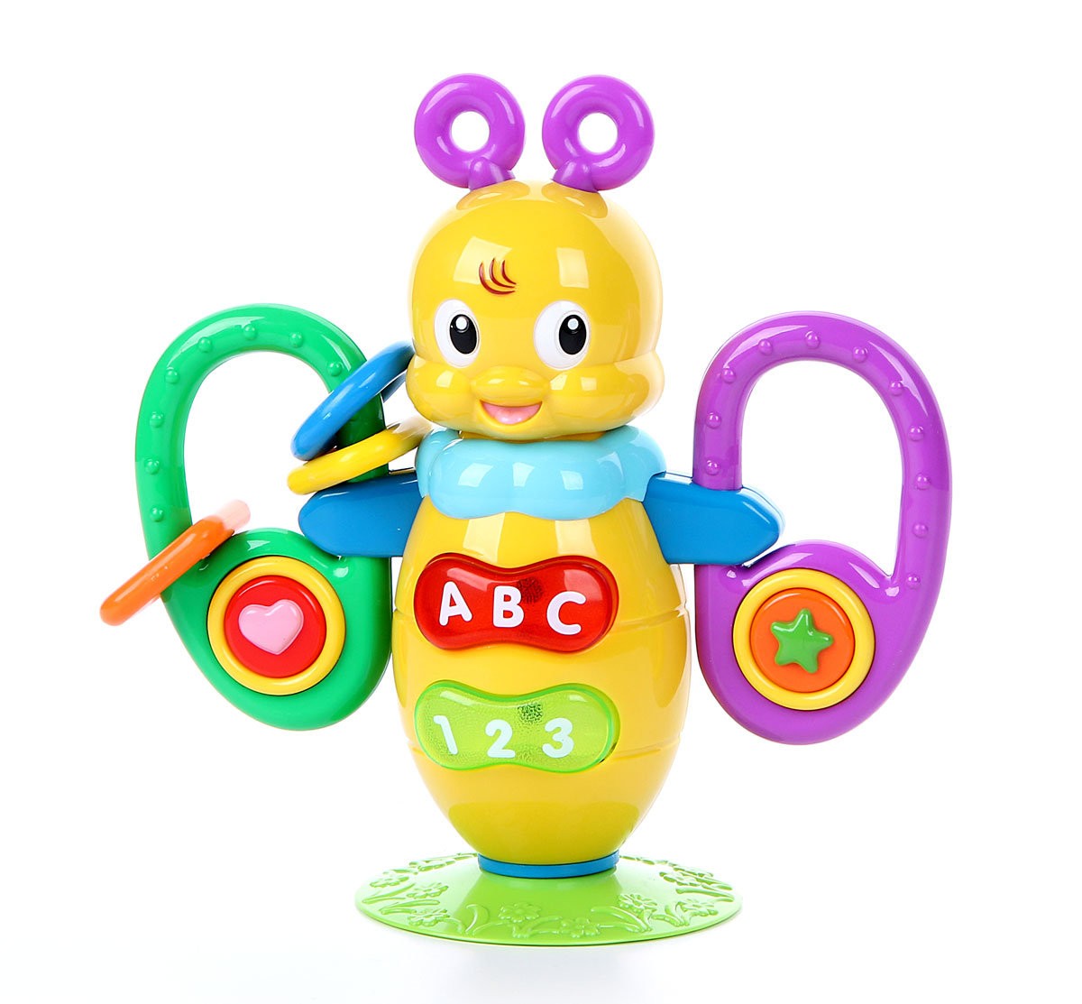 Zabawka ma ruchome skrzydełka - wystarczy lekko poruszyć jedno z nich, by usłyszeć wesołą melodię. Posiada przyssawkę, co ułatwia przymocowanie jej do powierzchni np. stołu. Przyssawkę można łatwo odłączyć od zabawki.