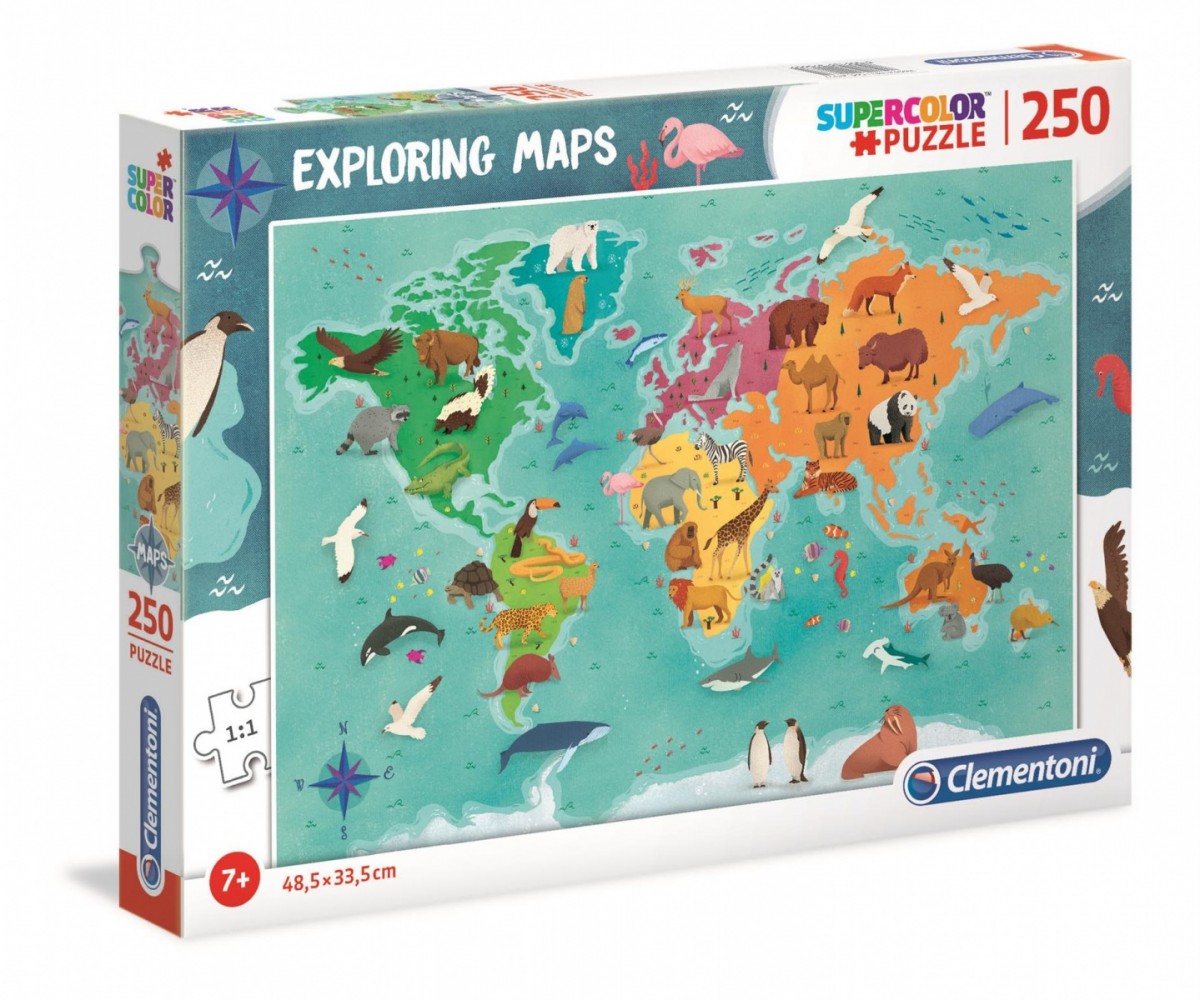 Puzzle 250 elementów EXPLORING MAPS Animals in the World