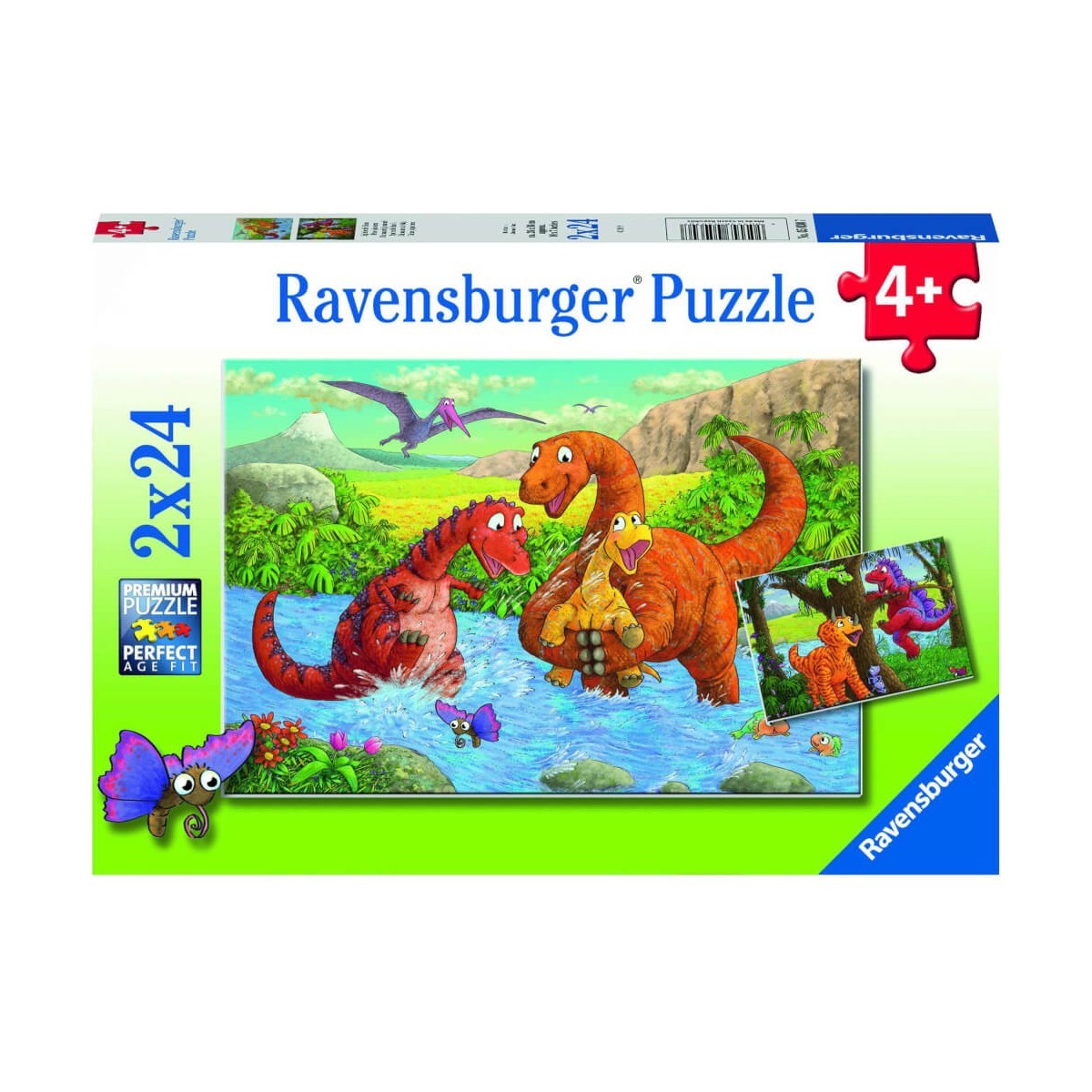 Puzzle 2x24 elementy Bawiące sie dinozaury