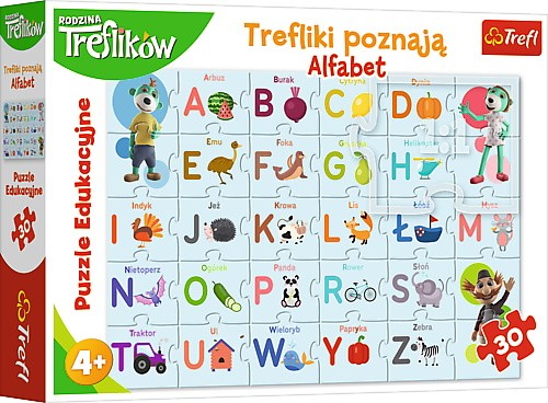Puzzle 30 elementów - Edukacyjne, Trefliki poznają alfabet