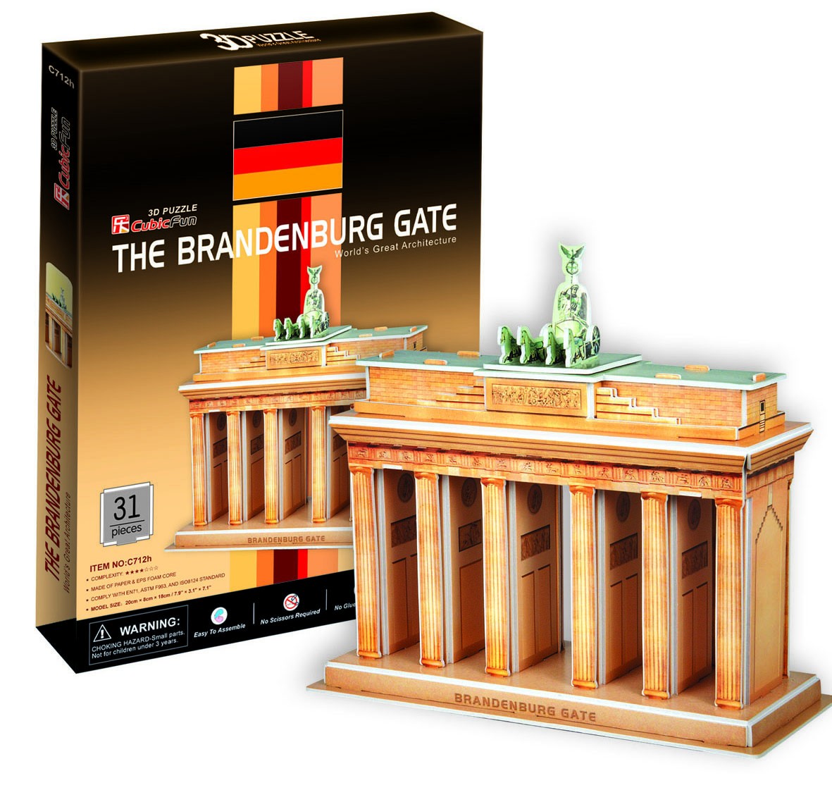 Opakowanie zawiera puzzle 3D, które umożliwiają złożenie modelu Brama Brandenburska.