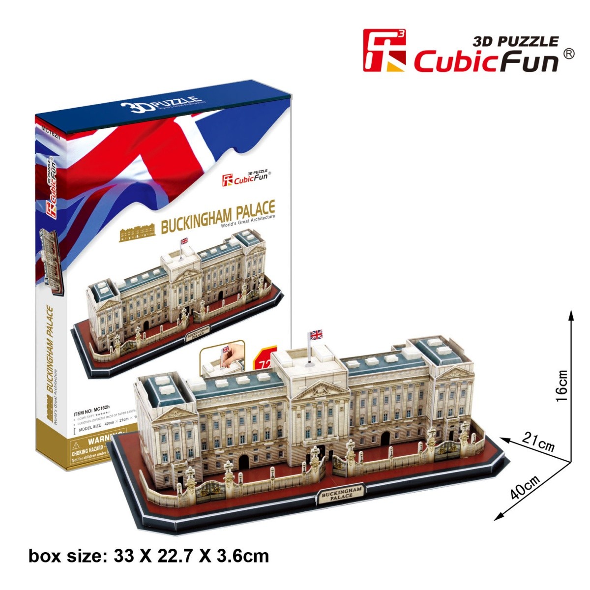 Opakowanie zawiera puzzle 3D, które umożliwiają złożenie modelu XL - Pałac Buckingham.