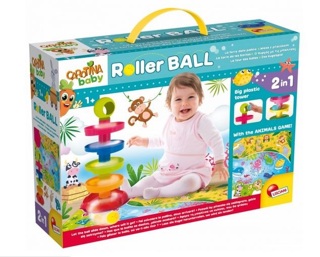 Zestaw zawierający maxi puzzle przedstawijące różne środowiska i zwierzęta. Podczas zabawy zadaniem dziecka jest umieszczenie zwierzątka do odpowiedniego środowiska. W zestawie znajduje się także plastikowa wieża, którą można złożyć z 5 elementów nakładanych na siebie. Każdy z nich wykonany jest w innym kolorze, co również umożliwia ćwiczenie umiejętności rozpoznawania kolorów. Po złożeniu wieży i umieszczeniu na jej szczycie piłki, można obserwować jej trasę.