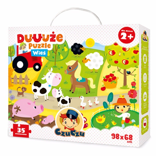 Każdy maluch znajdzie tu swojego ulubieńca: łaciatą krówkę, wesołego konika, czy puchate owieczki. Duuuże Puzzle Wieś to propozycja dla najmłodszych puzzlomaniaków. Małe rączki z łatwością dopasują do siebie duże, wytrzymałe elementy, a piękna i kolorowa grafika zachęci je zabawy.