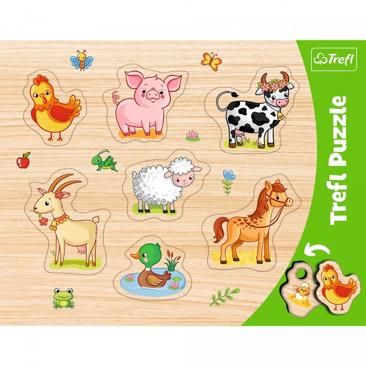 RAMKOWE UKŁADANKI KSZTAŁTOWE to duże, tematyczne puzzle dla najmłodszych dzieci. Dzięki otworom znajdującym się na odwrocie planszy, z łatwością można wyjąć każdy element i zobaczyć co się pod nim kryje.